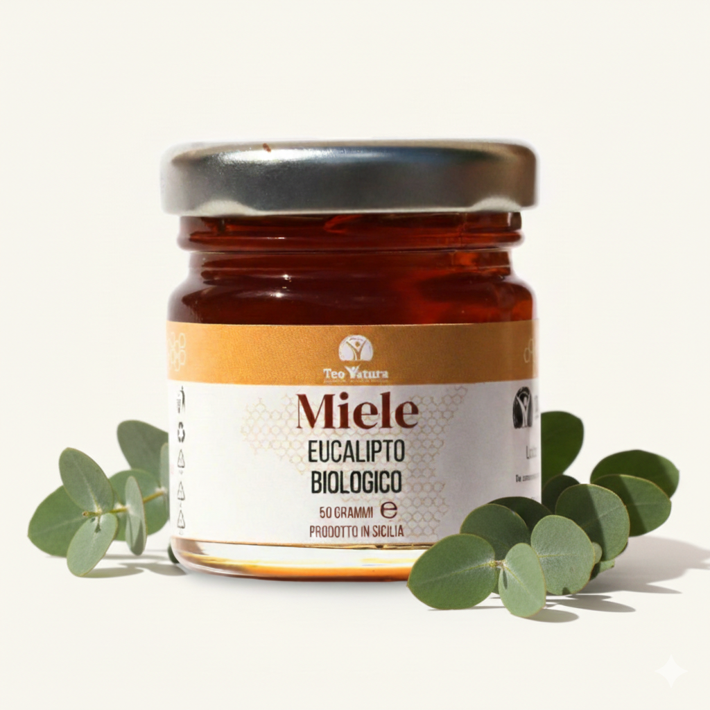 Il Miele di Eucalipto "Teo Natura" è un miele monoflorale dal colore ambrato scuro, con tonalità che tendono al grigiastro quando cristallizza. Il suo aroma è intenso, con note balsamiche che ricordano la liquirizia, il legno e il malto. È prodotto dal nettare dei fiori di Eucalipto, una pianta molto diffusa nel Sud Italia.